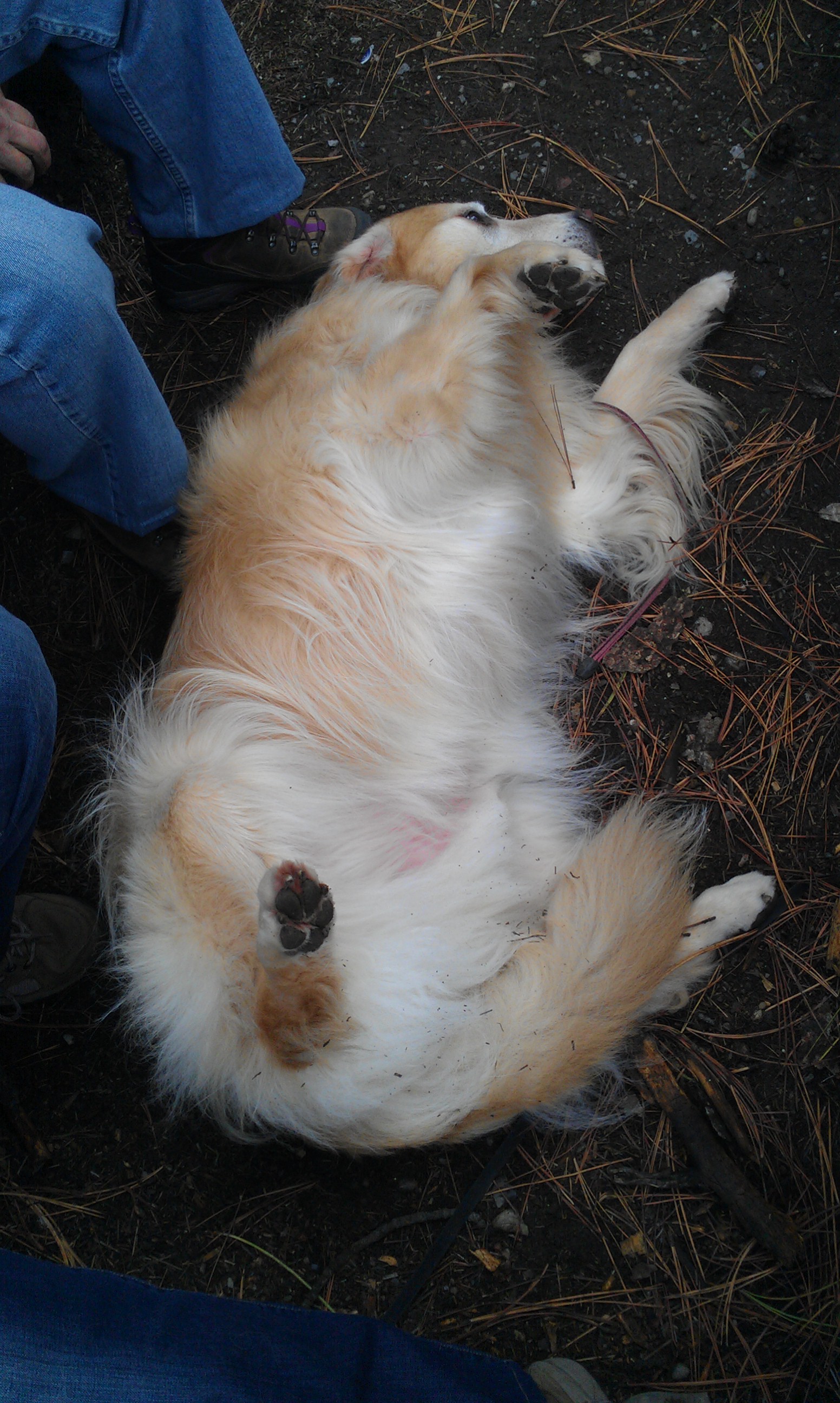 Part of the day’s jocularity was thanks to Lynn Ames’ chaperones, Parker and Dixie. I think it’s safe to say that they were the belles of the ball. No one—not even the authors who were reading—got as much attention as these kids. And, believe me, they had no problem with the attention, as you can see from the photo of Parker showing us his…assets.