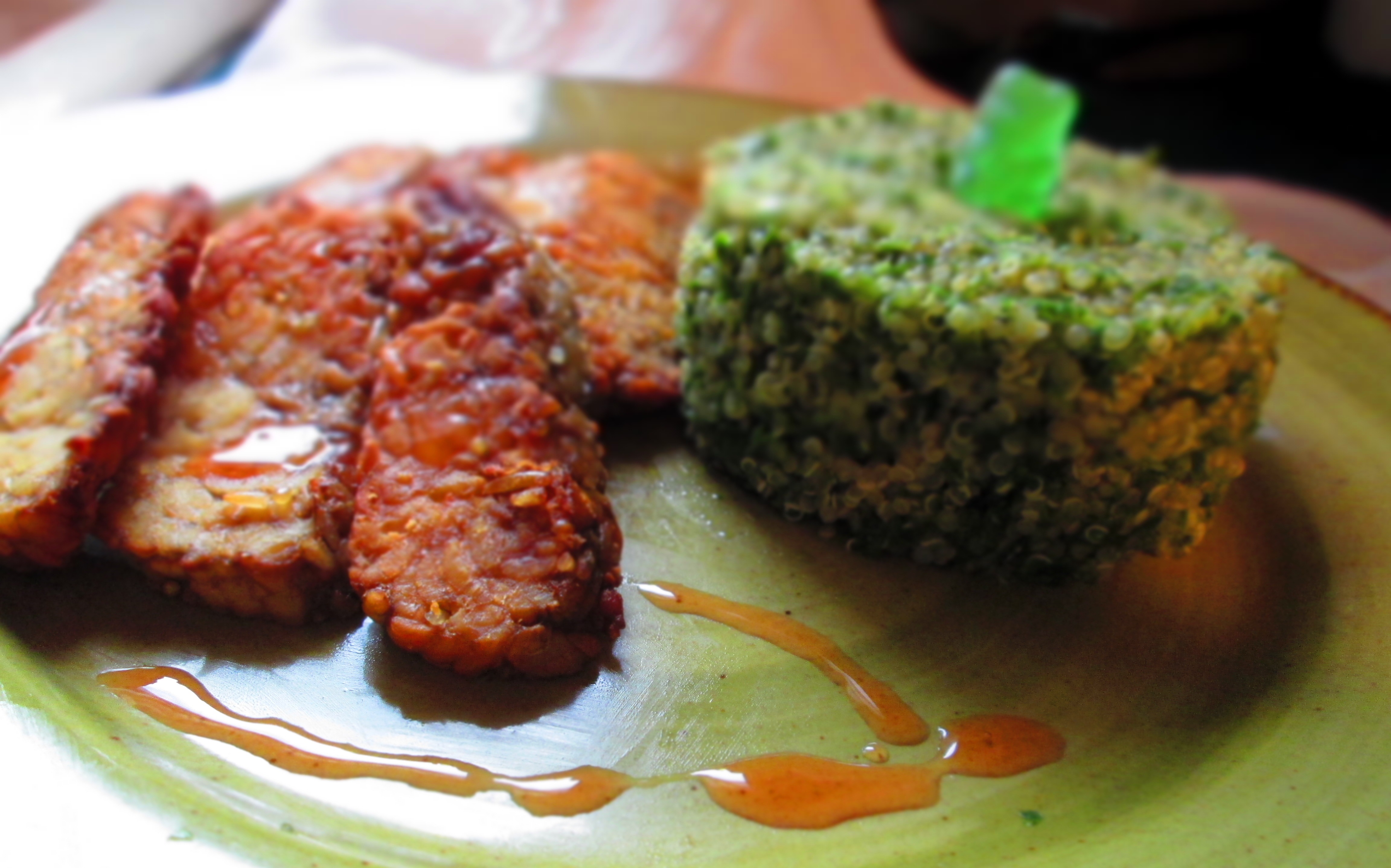 IMG_3192 MARINATED TEMPEH, QUINOA WITH KALE PESTO, AND GUMMIE BEAR GASTRIQUE